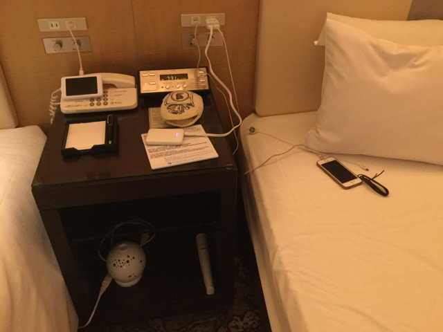 ヒーリングルームなのにデジタルデバイスにありがたいコンセントとUSBポート。
