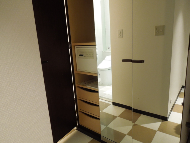 鏡貼りのクローゼット内にセーフテイボックスがあります。
